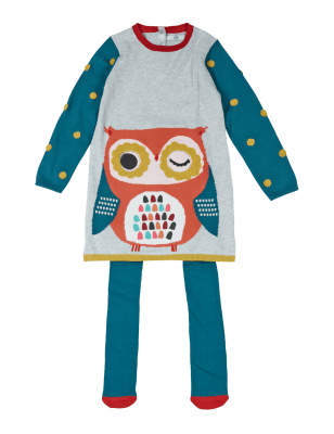 2 Piece Cotton Rich Owl Knitted Dress & Tights Outfit (1-7 Years)