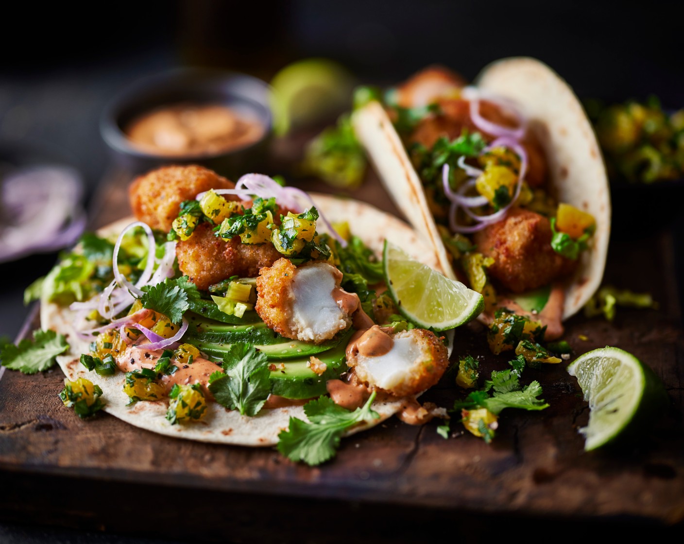 Crisp golden cod is the perfect base for a fresh, bright orange salsa. The fruit adds sweetness and gentle acidity, which balances the smoky heat from the chipotle mayo. Add creamy avocado, warm tortillas and plenty of herbs and you’ve got a colourful, family friendly dinner that feels light but still satisfying. Ideal for relaxed Fridays or a quick weeknight treat that brings sunshine to the table.
