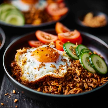 Bring bold, takeaway-style flavours to your kitchen with this wallet-friendly beef nasi goreng, made with our fully traceable Remarksable Value 5% fat British beef mince and long grain rice. Our punchy nasi goreng paste packs a flavour punch, balanced by crunchy cucumber, tomatoes and crispy fried eggs.