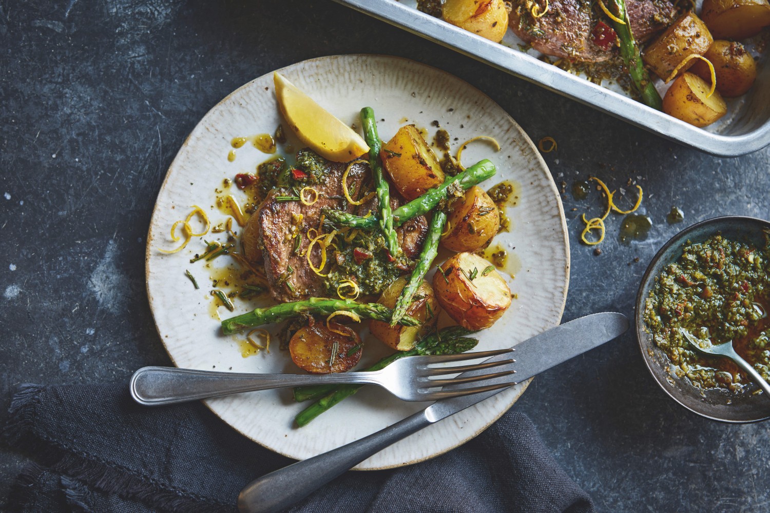 Early summer flavours of British lamb and new-season potatoes work a treat here with a zesty chimichurri dressing. Think Sunday roast, reinvented for midweek.