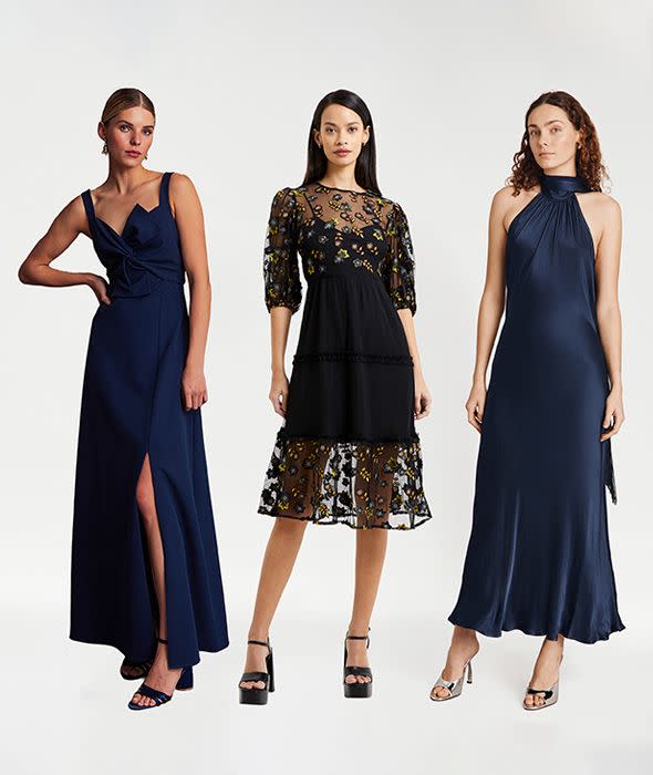 There's nothing more glamorous than a deep midnight navy or black prom dress. With its flattering sweetheart neckline, Monsoon's navy twist-front maxi dress is an ultra-elegant choice, while Ghost's slinky navy halterneck maxi is the last word in sophistication thanks to its column silhouette. If you prefer a shorter hemline, try French Connection's embroidered midi tea dress – its floral detailing adds some subtle colour. Offset a dark dress with sparkling hair accessories and jewellery – prom is an excuse to indulge in a little glitz, after all.