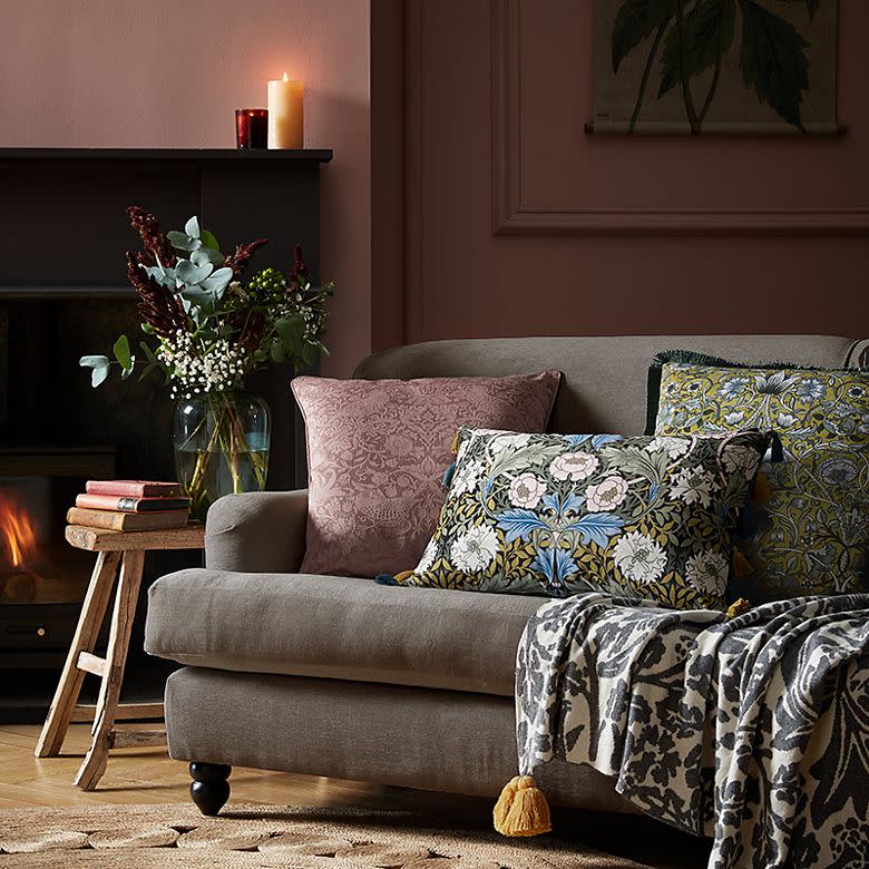 You'll discover that pretty much any colour and pattern of cushion goes with a grey sofa – it's the ideal blank canvas. Try soft pink, blue or green tones to give your living room a luxurious and modern feel. If you want to create a cosier vibe, combine velvet cushions with throws in plush faux fur and super-soft cotton for an inviting space that feels supremely sumptuous.