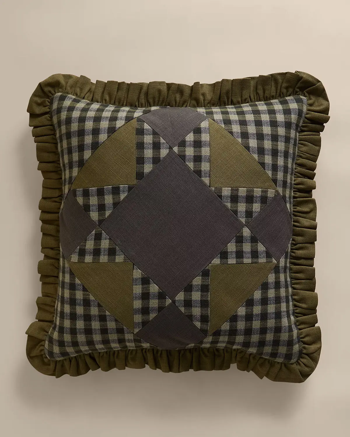 This gingham cushion and floral embroidered cushion are strikingly different in style however the warm ochre tones running through both keeps the scheme feeling harmonious. For added cosiness, team your cushions with a tactile throw.