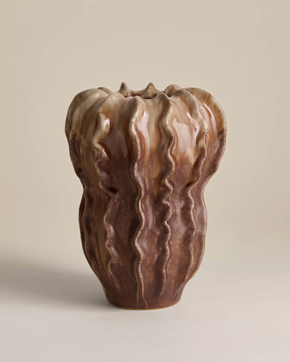 This ridged ceramic vase is a timeless piece; use it now to display autumnal artificial stems, then switch it up for tulips in spring. Our harvest-inspired vase will complement any autumnal decor scheme. Add candles and tea lights for a warm glow to add to the seasonal scene.