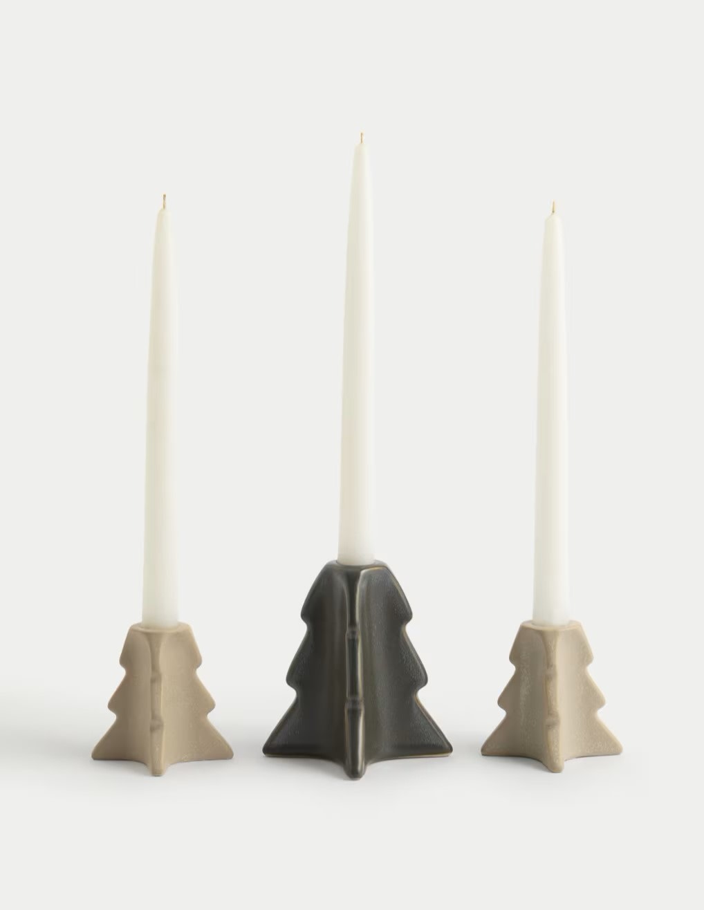 Keep the centrepiece sculptural – clusters of baubles, metallic foliage or a sleek arrangement of column candles create a look that feels luxe, modern, and well-balanced.