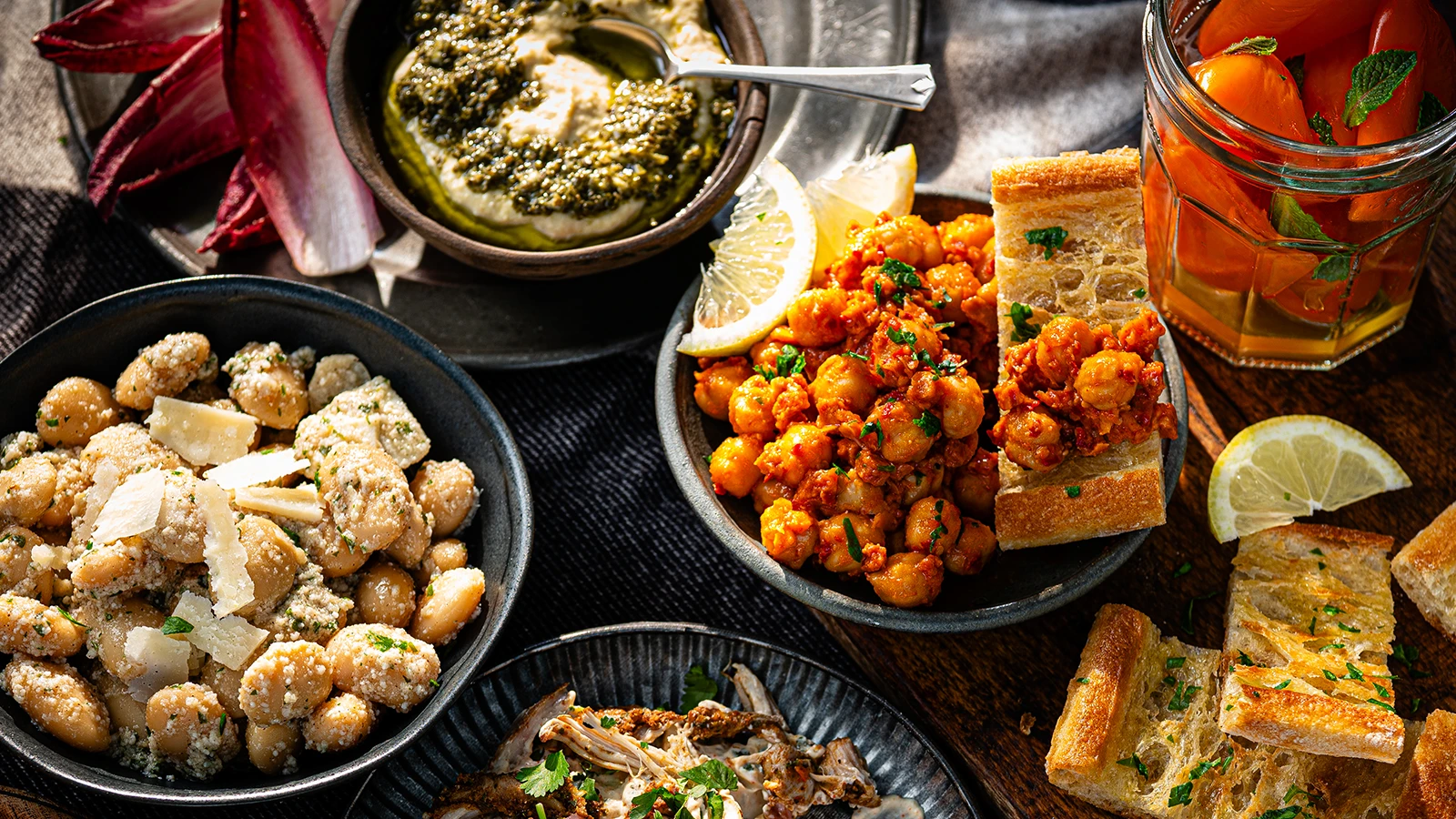 For the ultimate low-fuss, high-impact grazing board, head to our deli aisle to pick up flavour-packed mezze bites. Think smoky Grilled Turkish Olives, sweet Orange Sunburst Peppers, vibrant Dressed Salsa Verde Chickpeas and Pesto Houmous. Just add toasted ciabatta for dunking and you're good to go.
