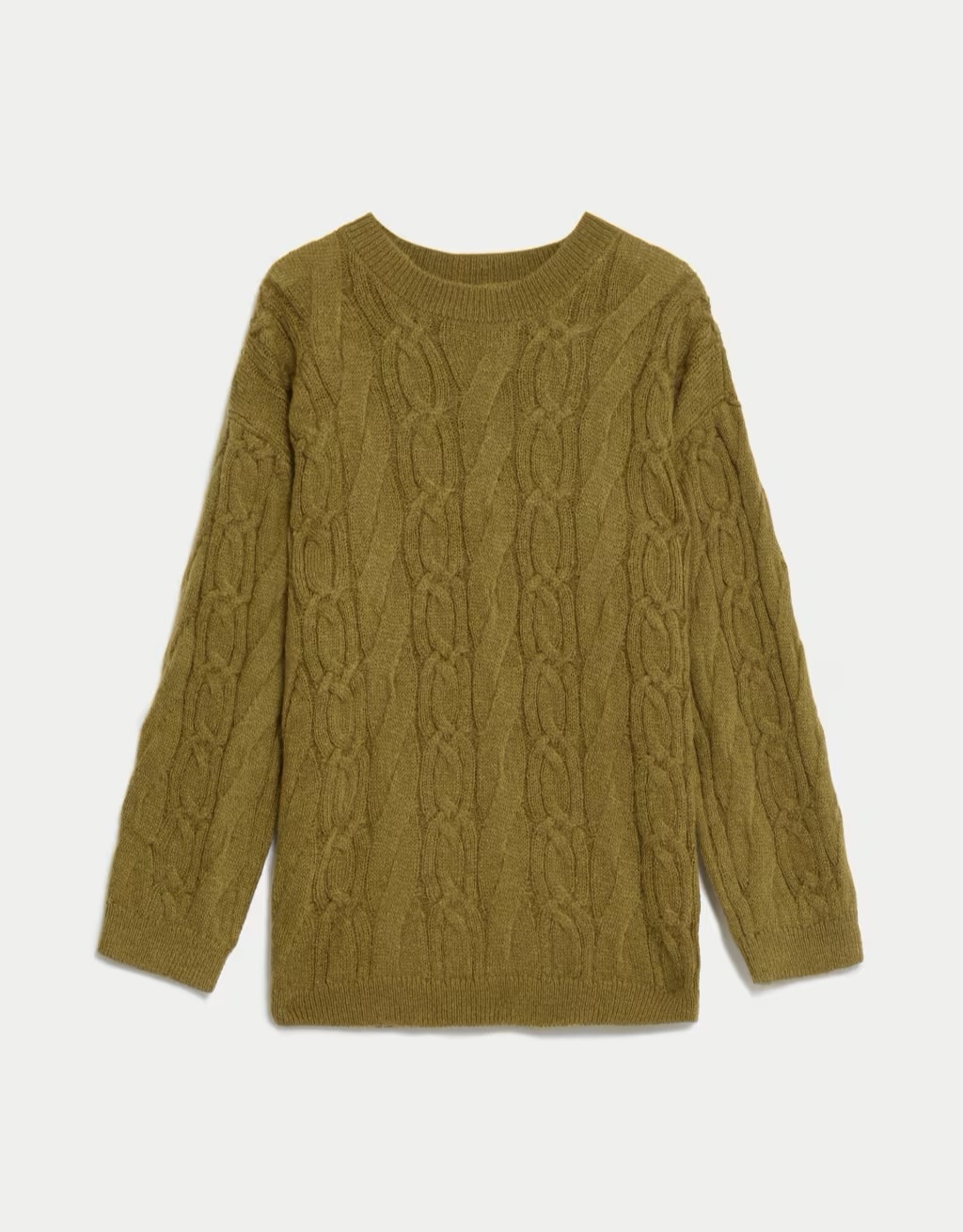 Per Una’s wool bouclé jumper looks elevated when half-tucked into trousers or thrown over a slip skirt, with its wool construction keeping you comfortably warm. For a touch of heritage charm, a cable-knit Fair Isle jumper in rich brown adds visual interest without fuss, and a striped fluffy knit injects a playful, snug finish to any winter look.