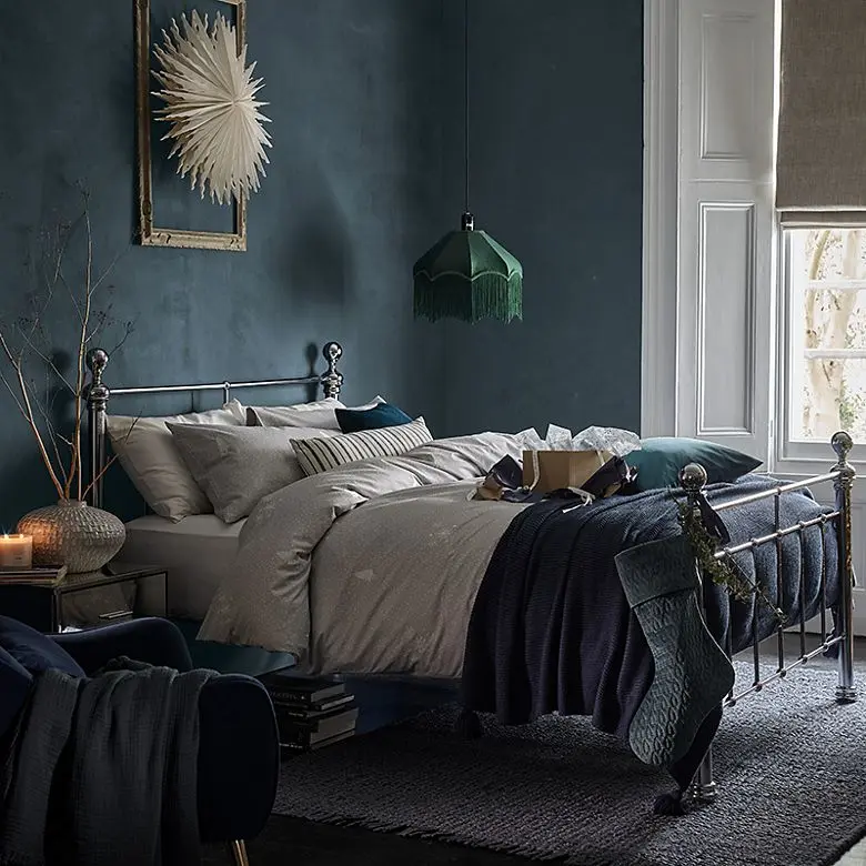 Start by getting the basics right: kit out your guest bedroom with quality bedding to ensure that guests have a great night's sleep. Think plump pillows, a supportive mattress and a snuggly duvet. Get even the biggest grinch into the Christmas spirit with our festive bedding – this silvery snowflake design is a Yuletide classic. Add some playful decorations, like our glittering garland lights, oversized decorations, and luxury velvet stockings, to make their stay extra special. Keep your guests cosy when the temperature dips by dressing the bed with plenty of throws and add scatter cushions for comfy reclining.