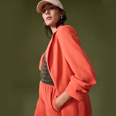 We love neutrals, but something about spring has us itching to wear vibrant colours. A classic blazer doesn't have to be black or navy – this joyful tangerine jacket will look great under blue skies. Wear with the matching shorts for an on-trend colour block look. If tangerine really isn't your shade, we've got good news: it's also available in bright pink. Alternatively, embrace some flower power in our satin look blazer, which is cut to a relaxed fit and emblazoned with lush botanicals. Keep your accessories simple and let a bright or patterned blazer be the star of the show.