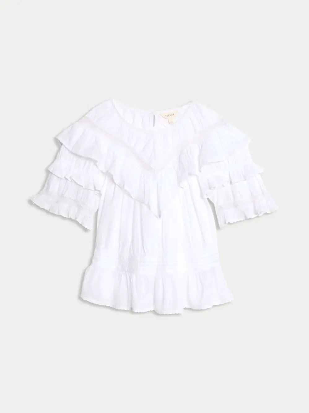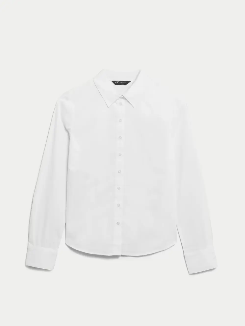 For an effortless feel, you can't go wrong with a classic white T-shirt. Pair it with this embroidered mini pencil skirt from Per Una. Loosely tuck in the front to highlight your waist and layer over the coordinating shirt.