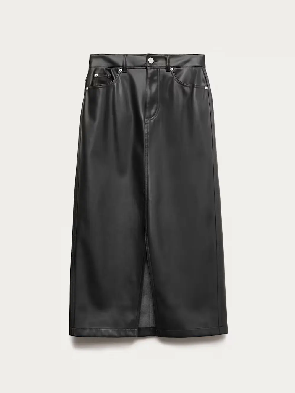 If you're still stuck on leather skirt outfit ideas, you can't go wrong with a sleek camel midi skirt. Saba's leather-look option is cut to a flattering pencil shape that's ideal for smart-casual occasions. Team it with a cream jumper and your favourite heels to feel put-together.