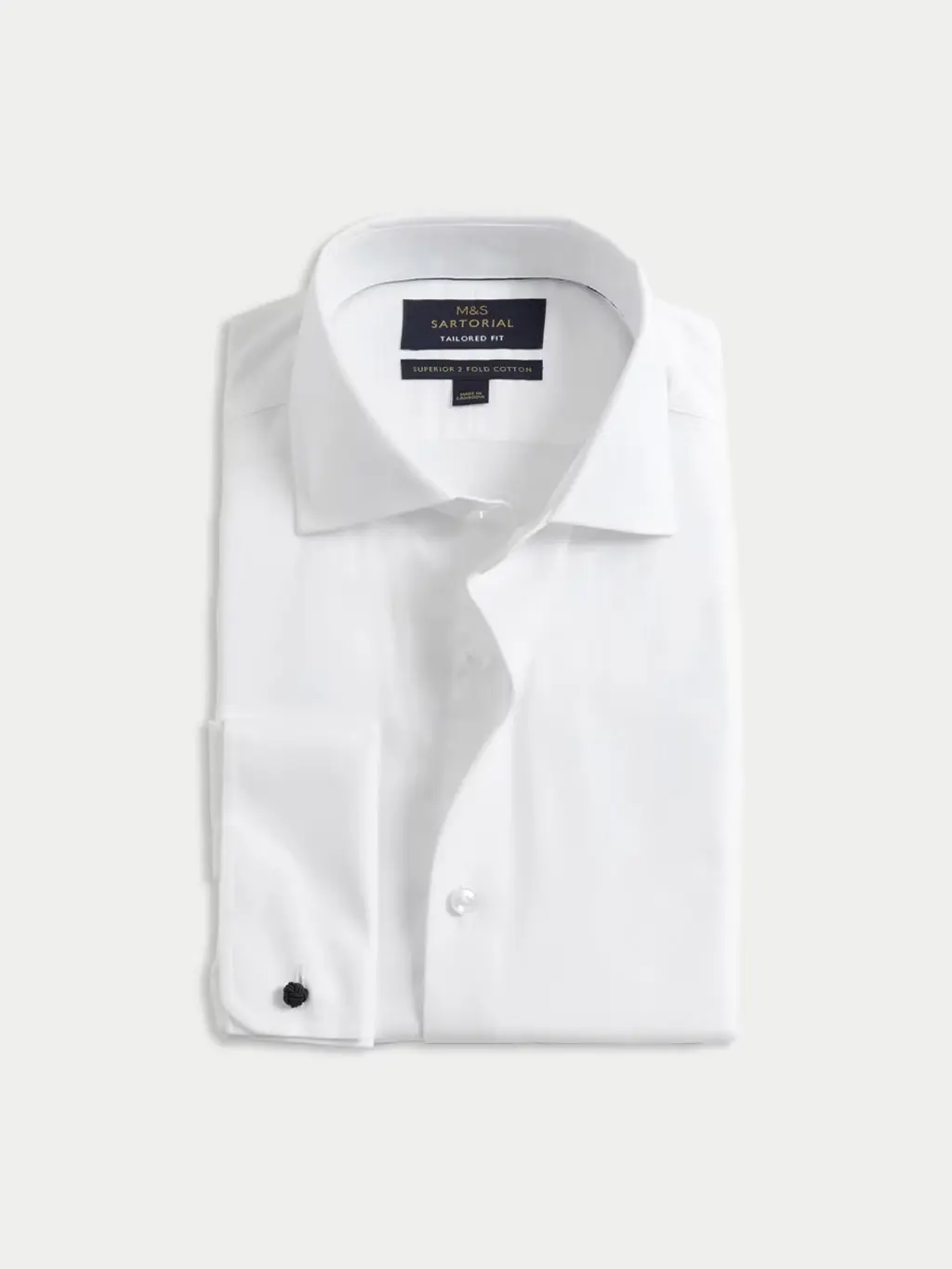 A white shirt is a wardrobe staple for every man, so why not explore our range of formal styles? This double-cuff option from M&S Sartorial is shaped with a cutaway collar and split back yoke for a clean, classic look.