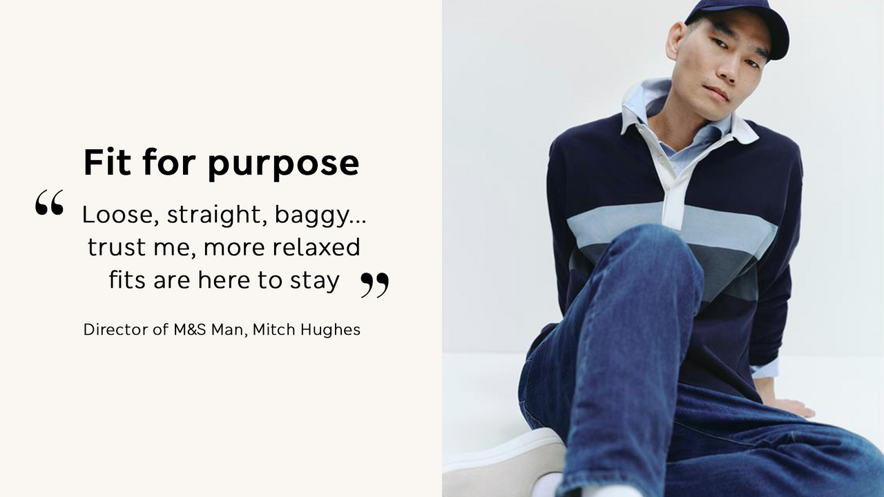 “We’re seeing a shift to looser silhouettes — tapered, loose, baggy, barrel. These new fits are built for comfort and movement. Our denim is also incredible value, starting at £20.