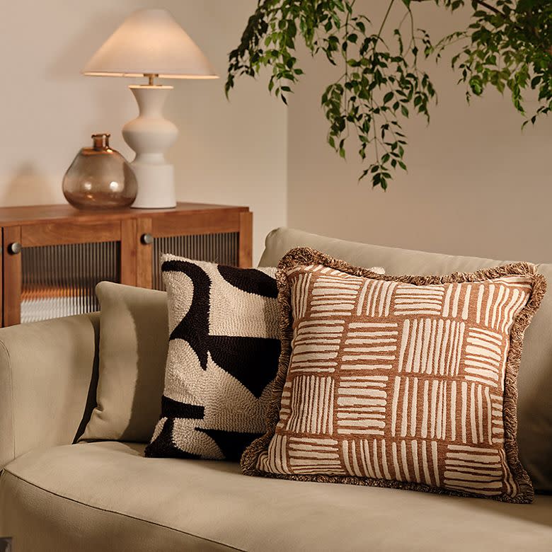 Soft, neutral interiors in varying shades of white, brown and cream have been a firm favourite for the past few seasons. If you want to give your neutral, pared-back space an update, try swapping in some sweet, intricate details. We're loving how this floral-stitch cushion invigorates a neutral setting by adding soft colour and interest. Build on the organic feel with copious amounts of greenery (real or fake: the choice is yours), scattered ornaments and low-level lighting to add to the cosy, yet airy feel.