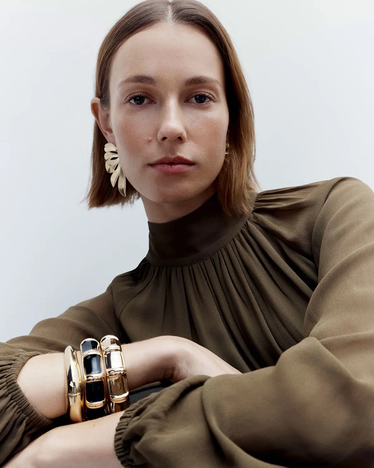 Choosing the right material is key for successful day-to-night dressing. The trick is to find a garment suitable for daytime, but made in a luxurious fabric to dial up the glam factor and segue effortlessly into night-time. A chiffon or silk, high-neck blouse strikes the right balance: modest enough for daytime duties, but effortlessly elegant when the sun goes down. Just add bold jewellery and swap flats for heels to take it into the night.