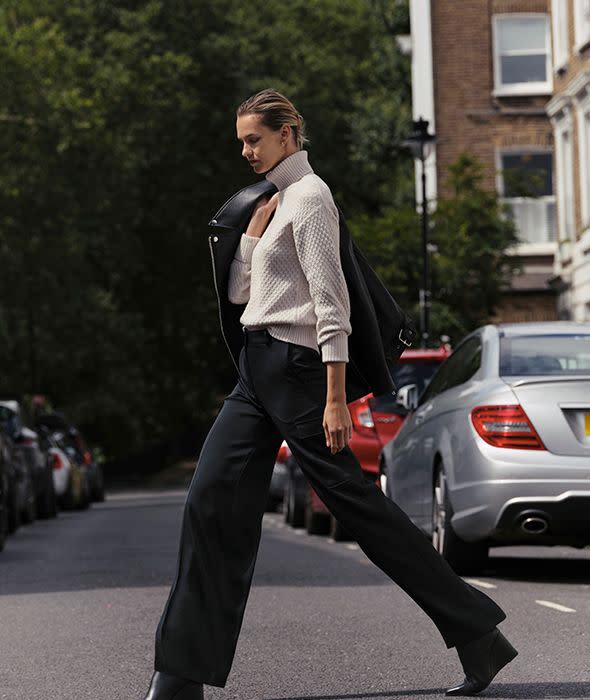 How to kill two autumnal trends with one clever buy? Cleverly combining a wide- leg fit with rebooted nineties styling, these cargo trousers could be your new go-to as we march into the new season. The large patch pockets add a utilitarian, yet stylish feel. Pair with a contrasting textured knitted jumper to keep things cosy on cooler mornings or lighten up with a classic T-shirt on balmier September days. Footnote: keep things interesting with a wedge-heel boot.