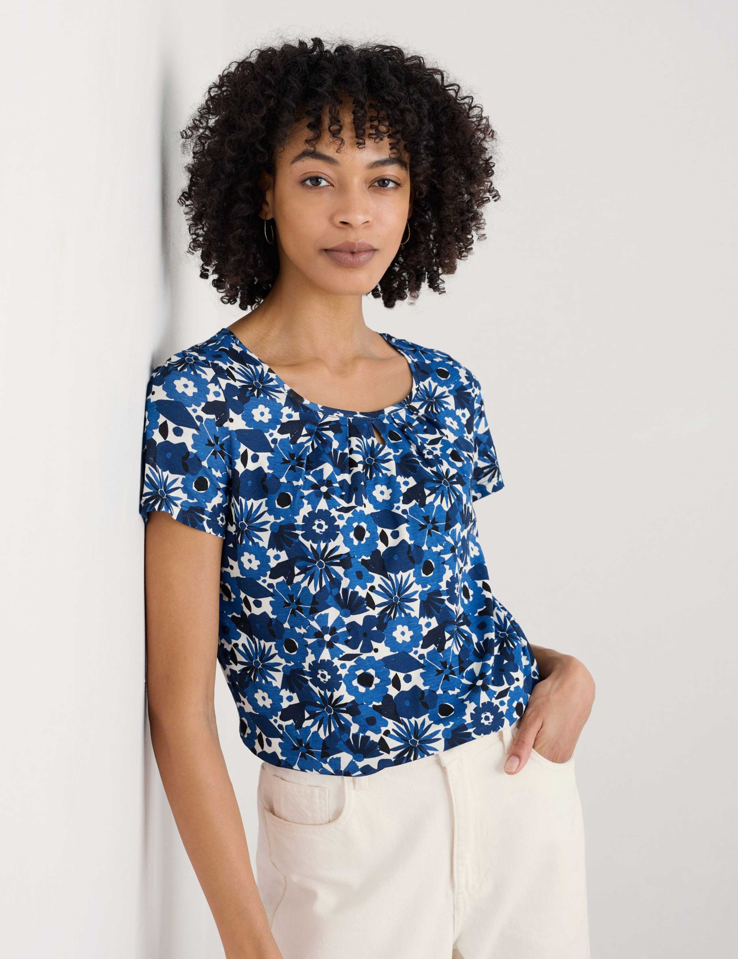 This floral t-shirt from Seasalt Cornwall is crafted from cotton-blend fabric for a soft and breathable feel. It's made in a relaxed fit with breezy short sleeves. The scoop neckline is complete with a delicate keyhole and soft pleats for a gentle drape.