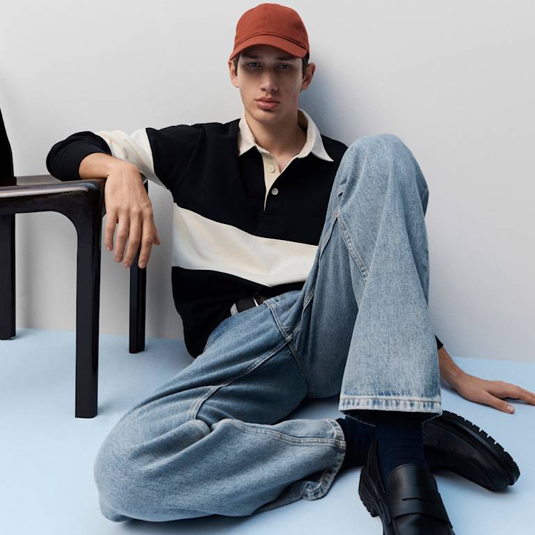Man wearing polo shirt, jeans and red cap