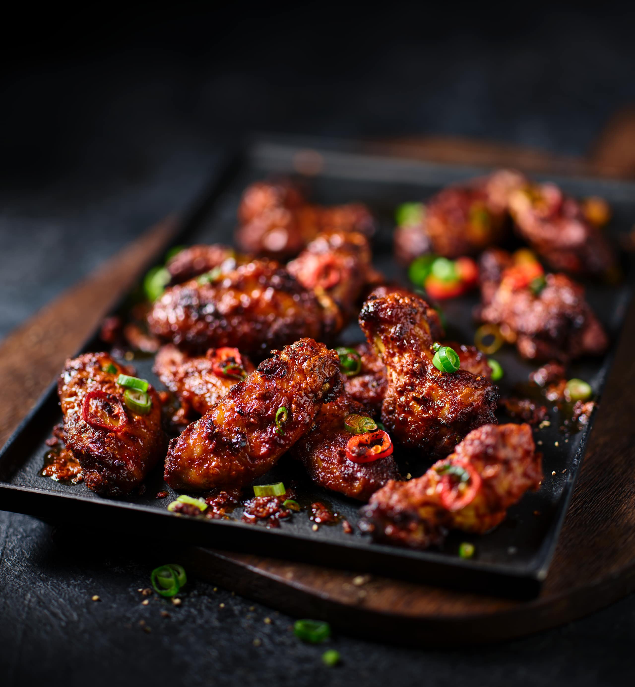 Bold and full of flavour, these British chicken wings are marinated in a hot Buffalo sauce made with fresh chilli. Spicy and sticky, they’re perfect for sharing. Oven‑cook in around 25 minutes until crisp and golden.