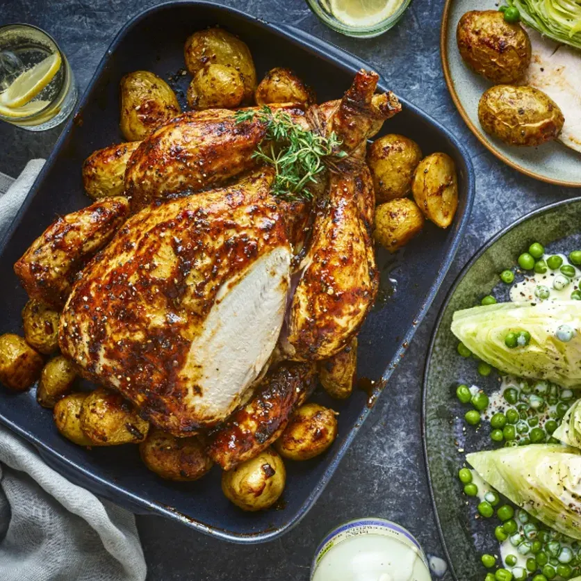 Our M&S Select Farms British Roast in the Bag Rotisserie Chicken is a flavourful choice for your Sunday lunch. This easy-to-cook whole chicken is glazed with a sweet and sticky marinade saving you valuable prep time. Once cooked, serve it alongside crunchy veggies and roast potatoes.