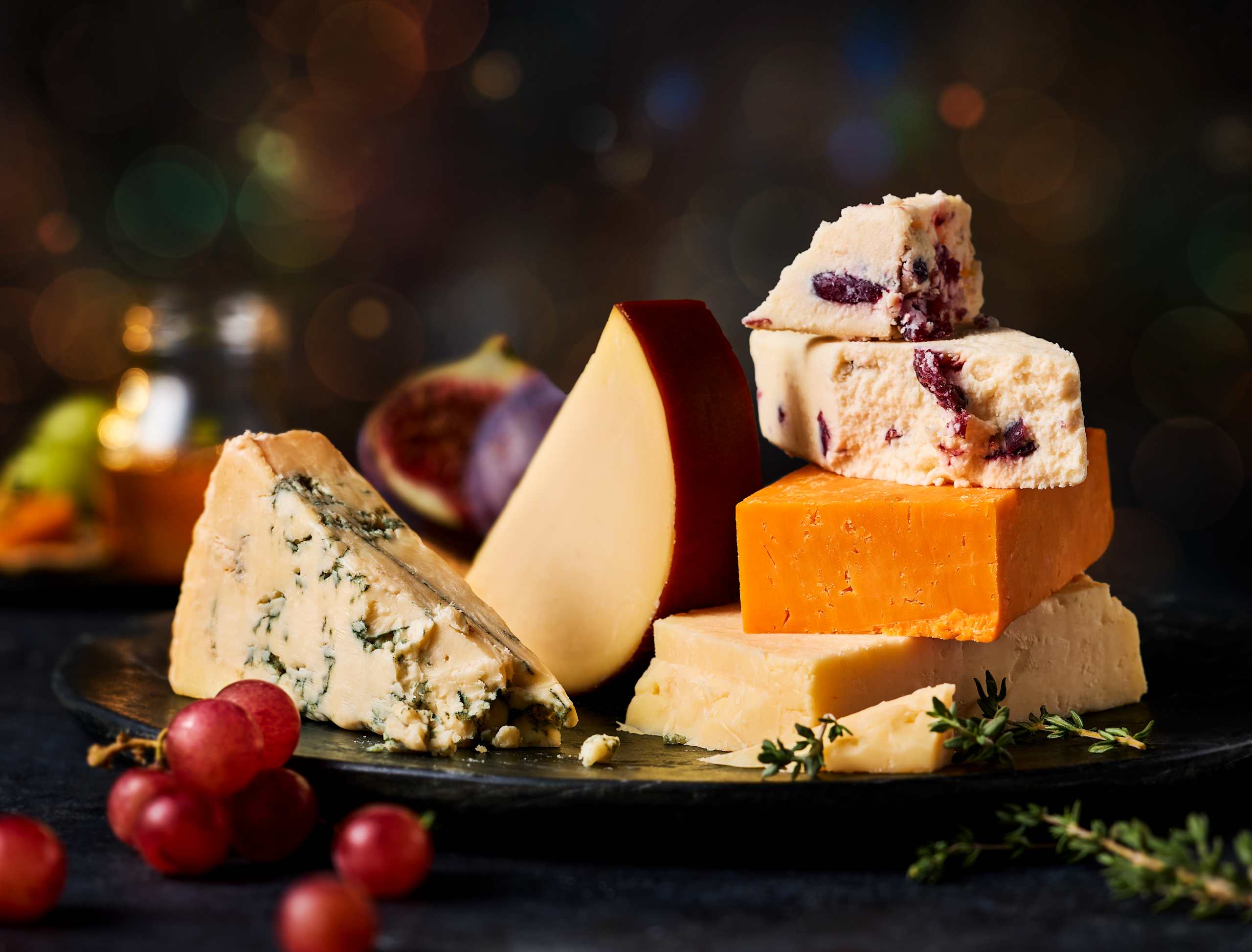 An expertly sourced selection of cheeses spanning the perfect balance of creamy to crumbly textures and robust to tangy flavours. It includes festive favourites such as blue stilton, French brie, red leicester and wensleydale with cranberry.
