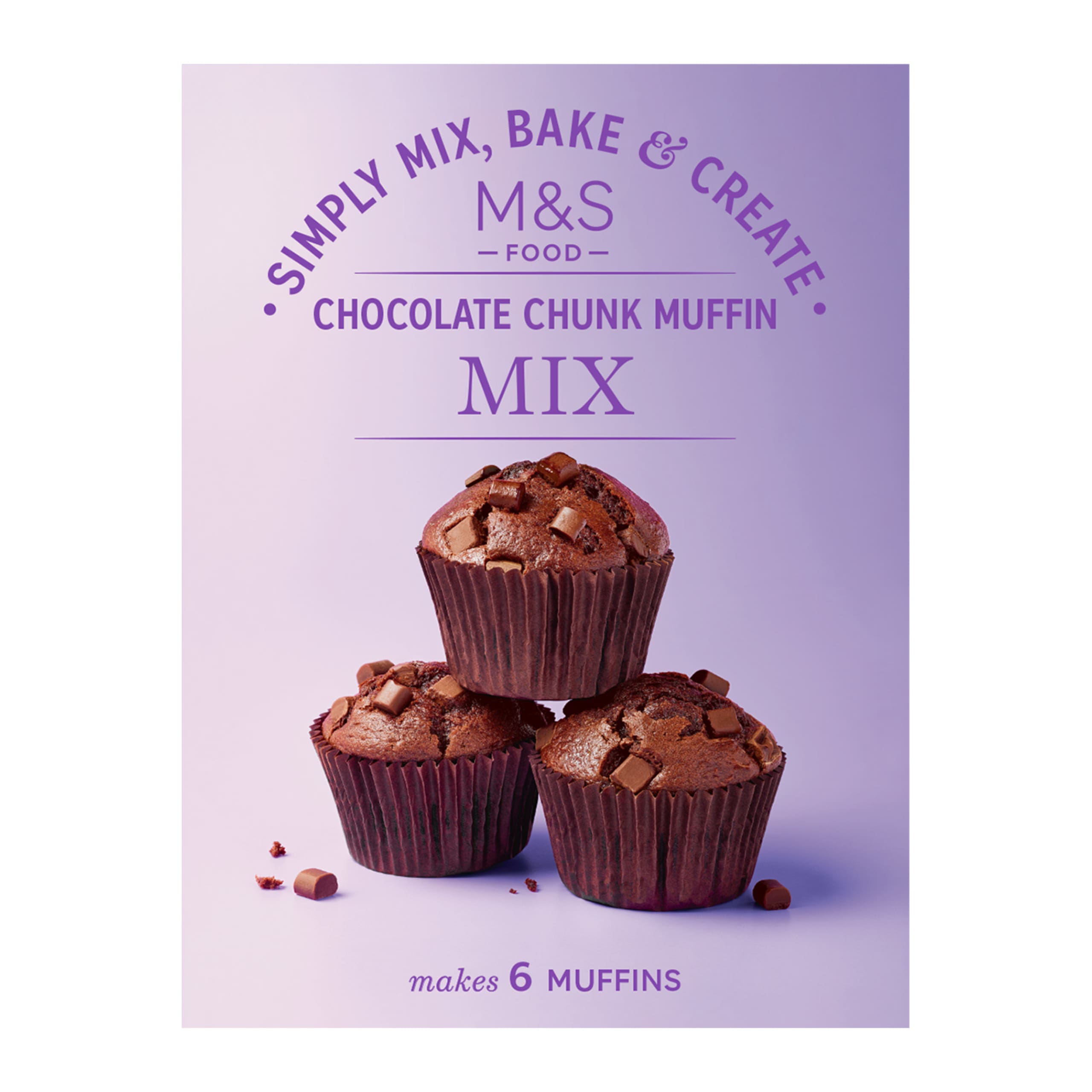 Our Chocolate Chunk Muffin Mix is a simple way to create rich, moist muffins dotted with indulgent dark chocolate chunks. Simply add eggs, butter, milk, and vegetable oil. Each pack makes six muffins, and cases are included.