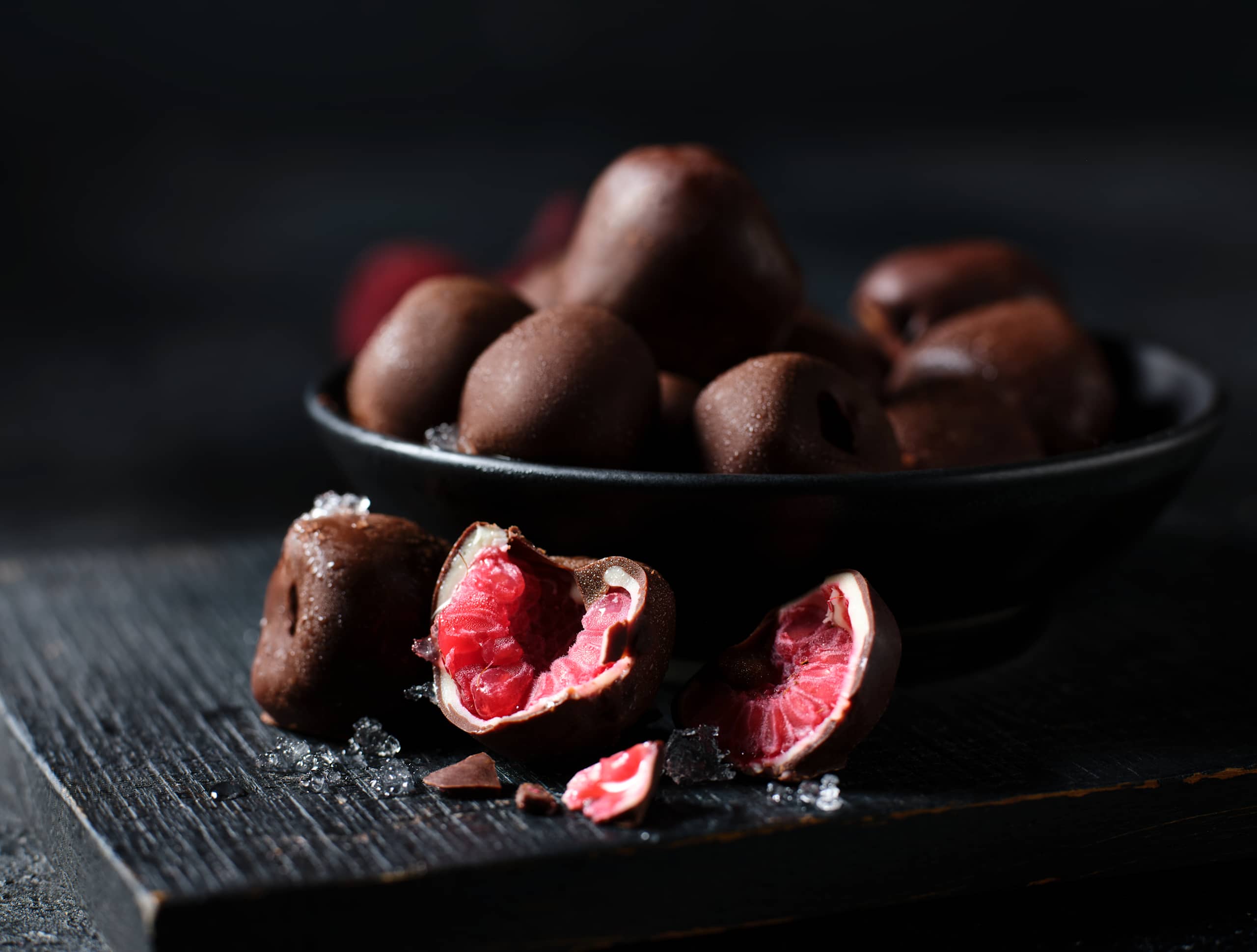 Each raspberry is double-dipped in smooth white chocolate and rich 85% dark chocolate, creating a luxurious contrast of flavours. We use only responsibly sourced, independently certified cocoa in our chocolate.