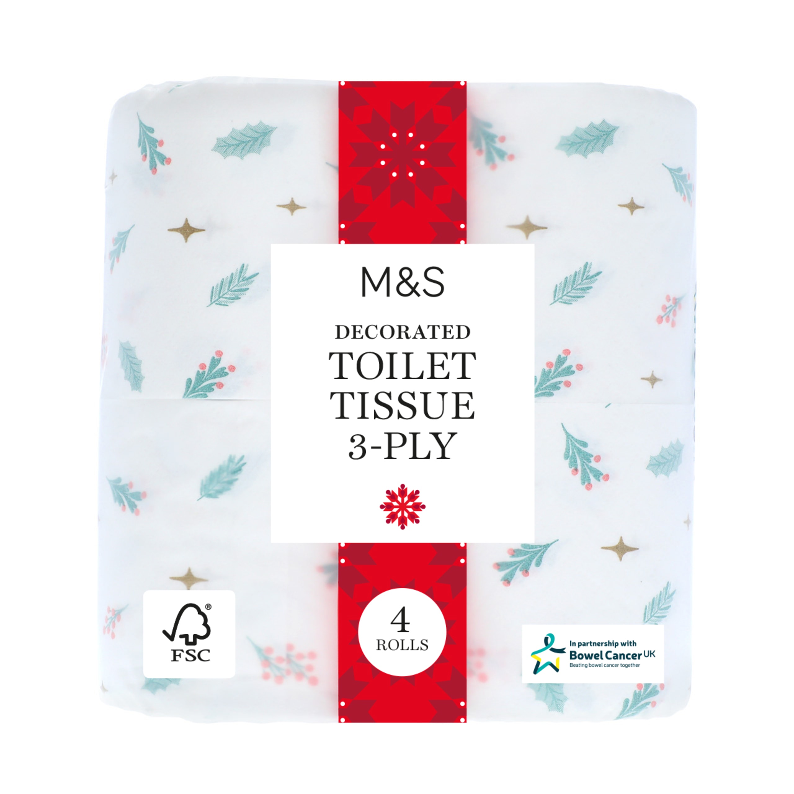 Bring home some festive cheer with this luxuriously soft 3-ply loo roll, decorated with charming holly patterns.