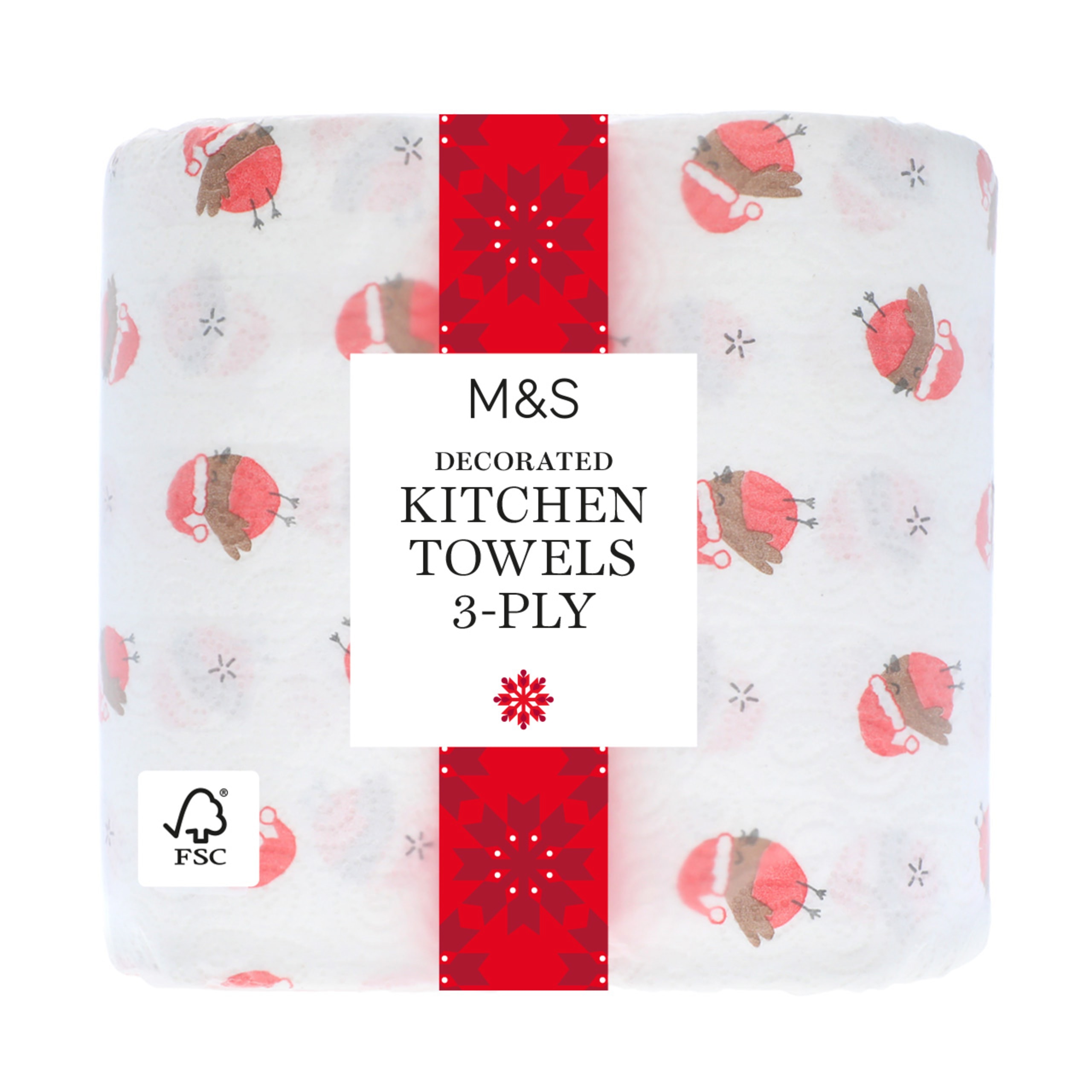 Our Christmas Ultra Absorbent Kitchen Towels combine festivity with functionality. This 3-ply design efficiently soaks up spills, while the charming robin print adds a touch of seasonal cheer to your kitchen.