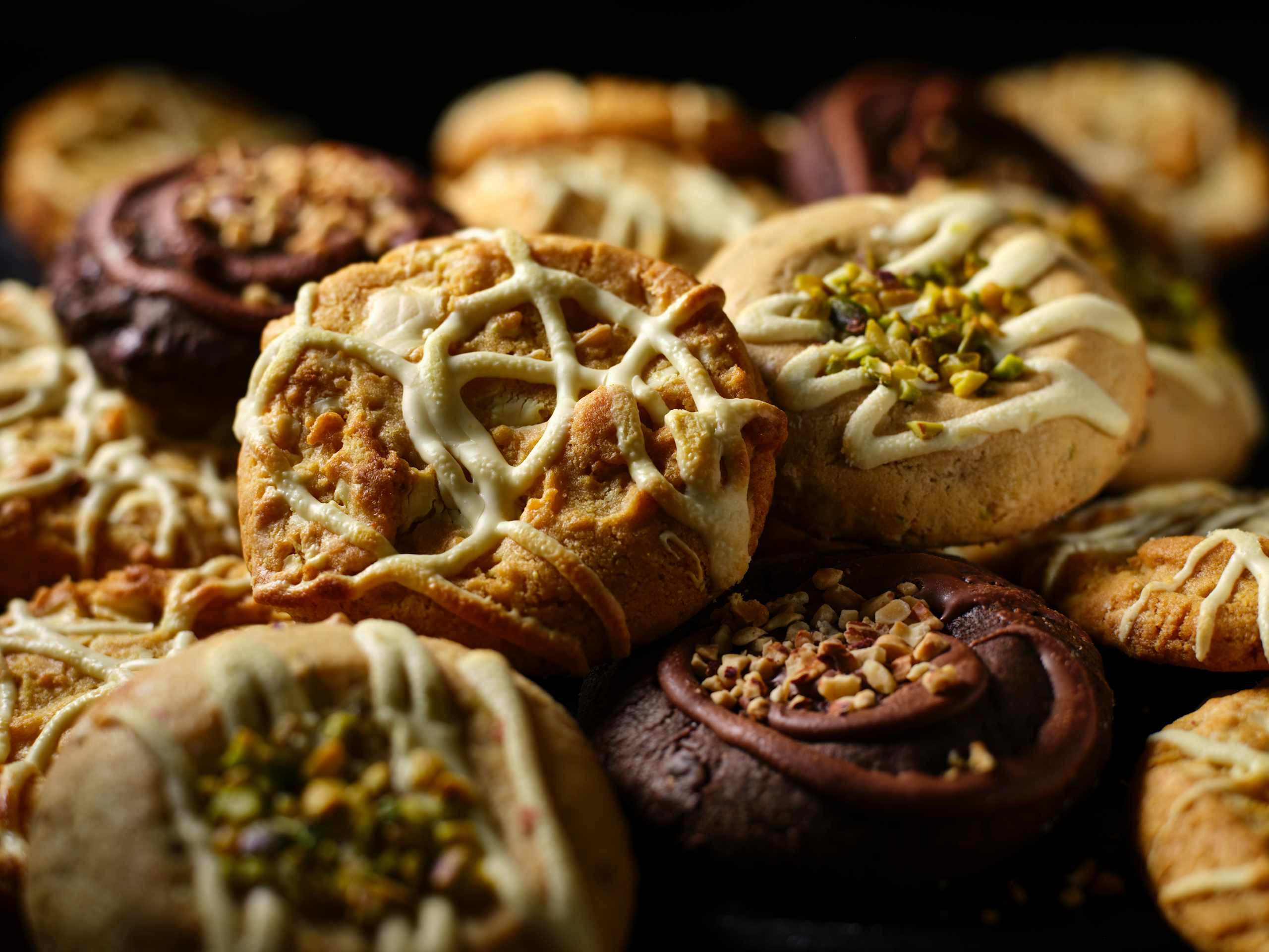 A chocolate lover's dream, our dark chocolate cookie is made with crunchy nibbed hazelnuts, filled with an oozy chocolate and hazelnut centre, and hand finished with a swirl of milk chocolate and a scatter of roasted hazelnuts. Pick up this single-serve cookie in the bakery section.