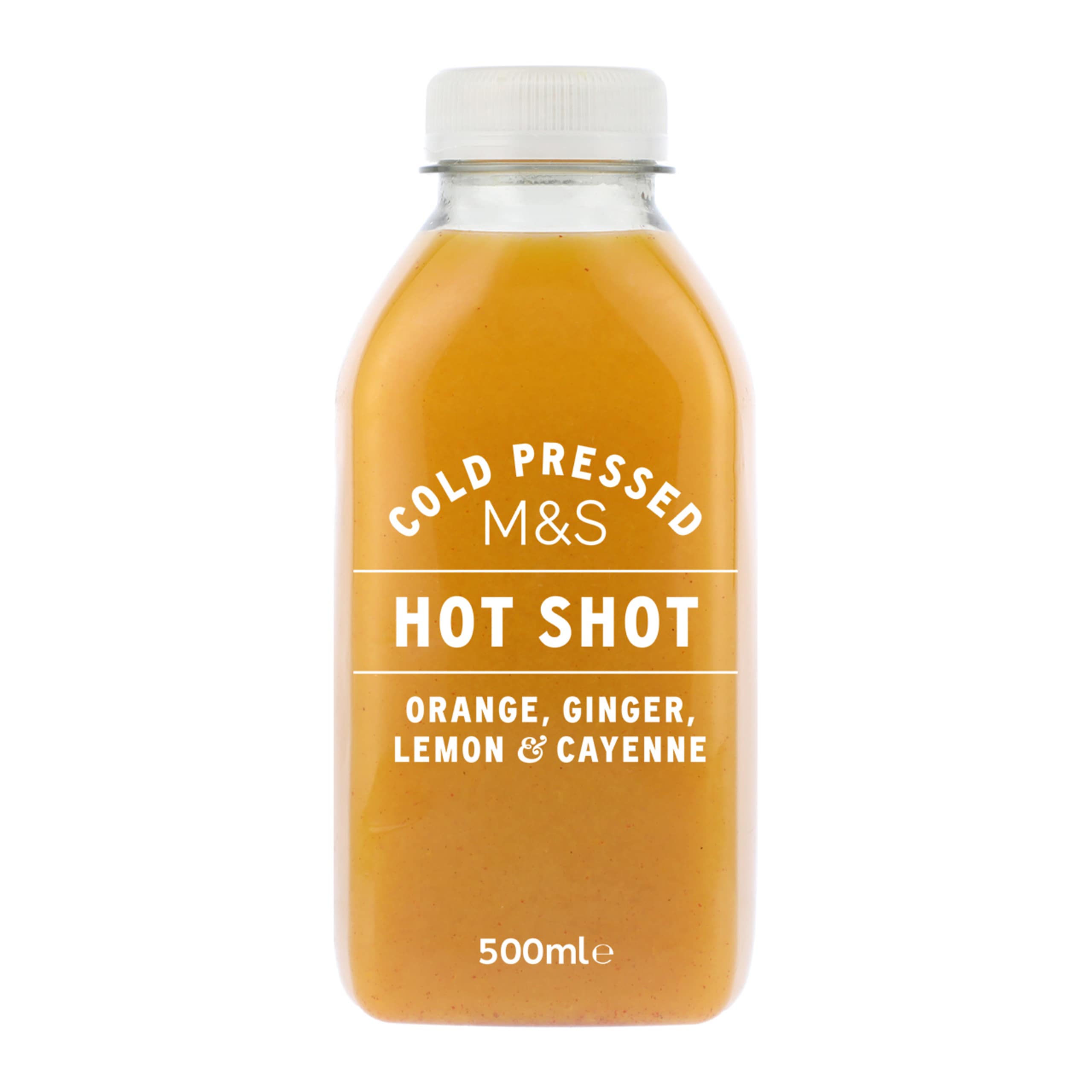 Our Cold Pressed Hot Shot is a zesty blend of freshly cold-pressed orange, apple, lemon, and ginger, enhanced with a kick of turmeric and cayenne pepper.