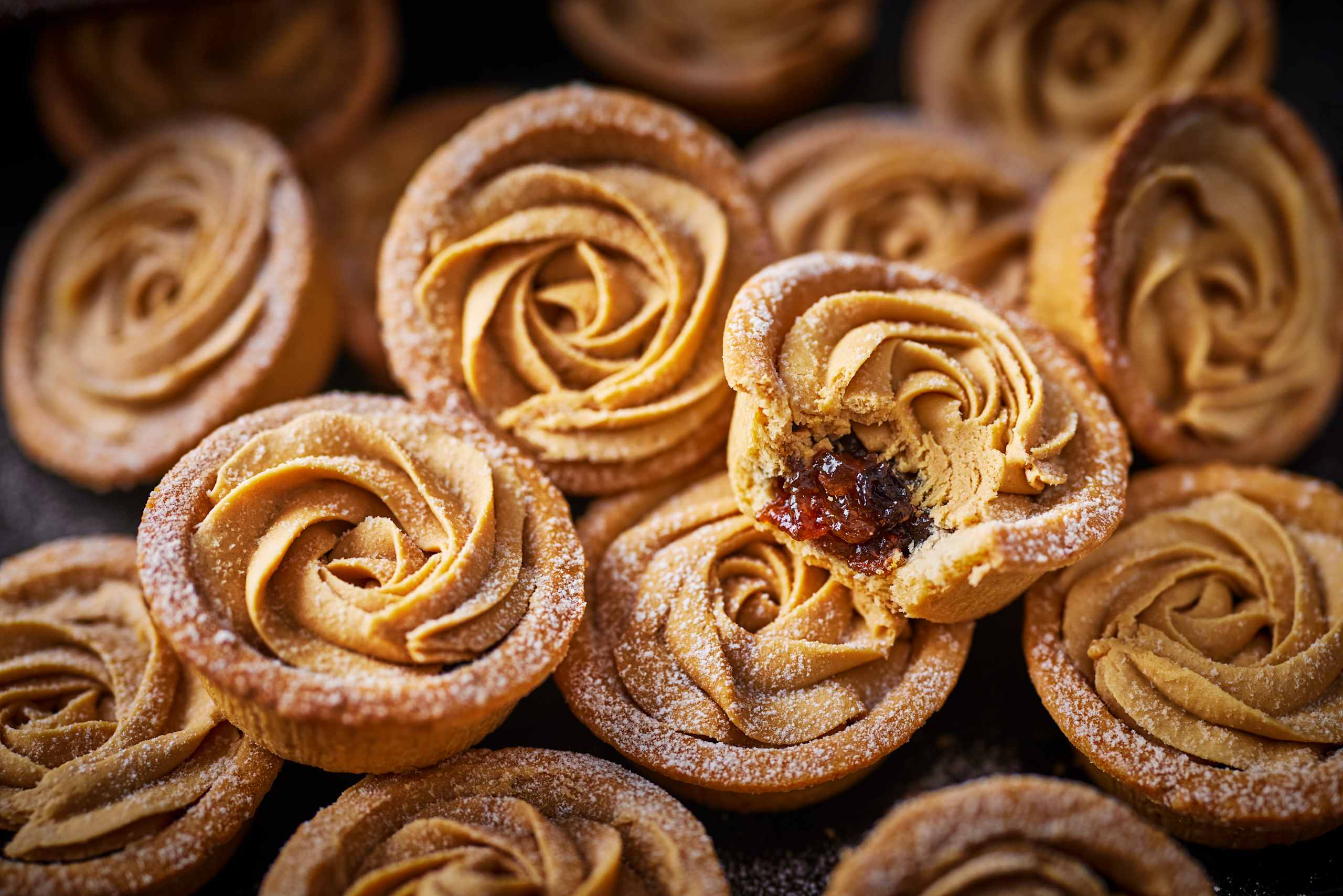 Our Collection Brandy Butter Mince Pies feature a melt-in-the-mouth, all-butter shortcrust pastry made with a blend of wheat and Wildfarmed flour, generously filled with plump vine fruits, cranberries, clementine and Cognac. They're finished with a luxurious hand-piped brandy butter infused with French brandy and Marc de Champagne.