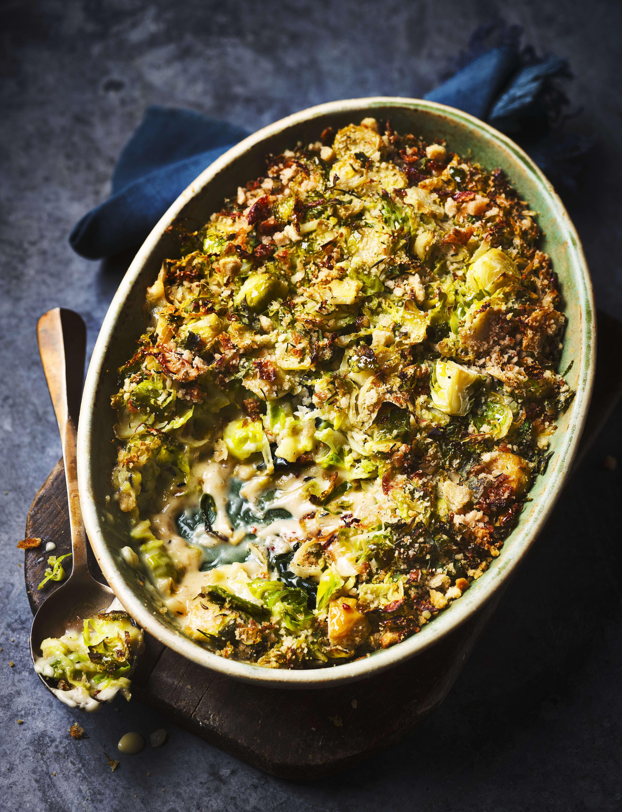 British Brussels sprouts in a rich, creamy white wine sauce made with Barber’s West Country farmhouse vintagr cheddar and mozzarella with leeks, cavolo nero and a crunchy breadcrumb topping.