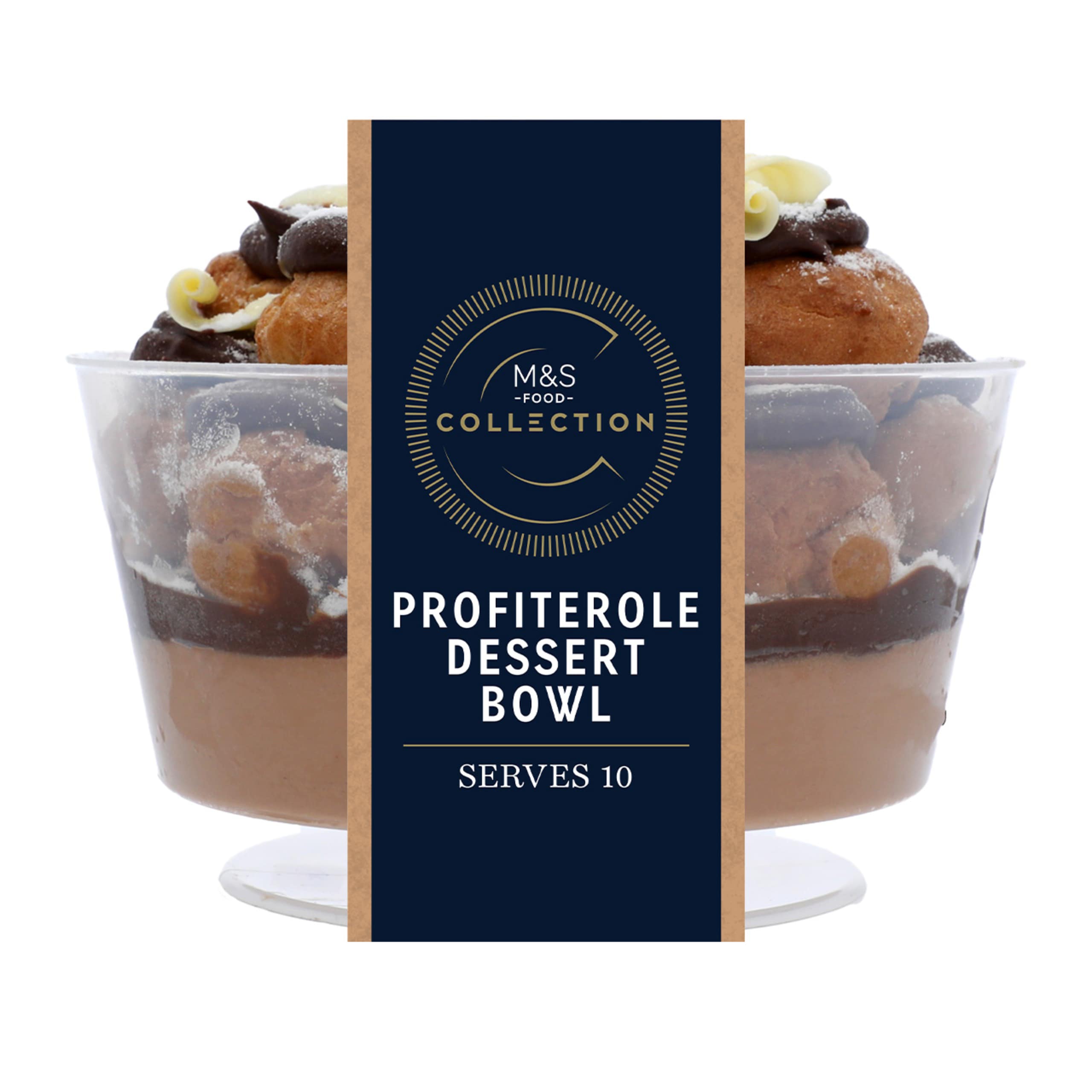 For a showstopping finale to your seasonal celebration, serve this layered dessert of chocolate mousse, cream-filled profiteroles and rich chocolate sauce, decorated with white chocolate curls and sweet dusting.