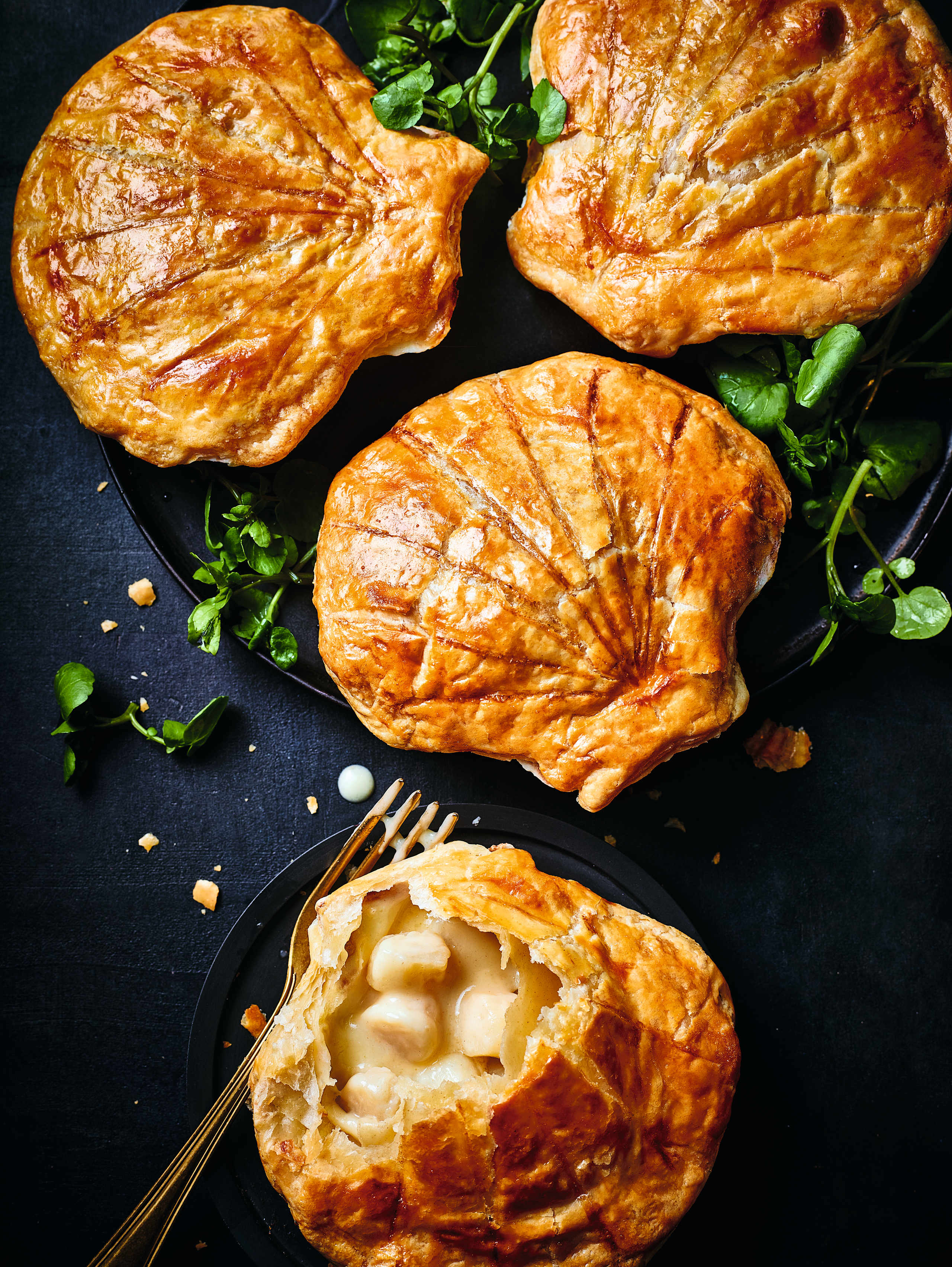 Our sweet and tender Patagonian scallops are nestled in a creamy Champagne sauce and crowned with flaky, all-butter puff pastry. Serve as an elegant starter on the big day.