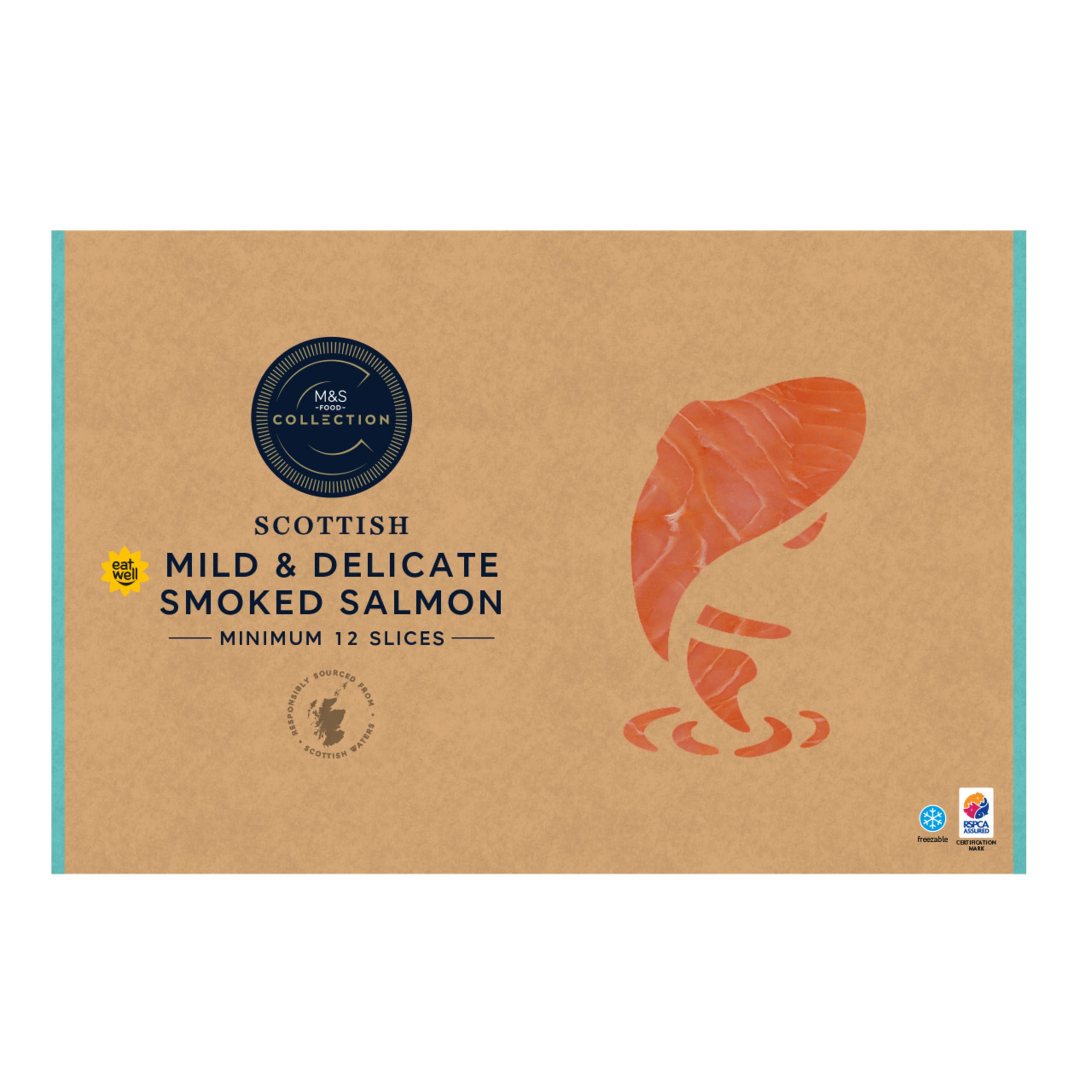 Our sliced Collection Scottish Mild and Delicate Smoked Salmon is fully traceable and responsibly sourced from Scottish waters. It's expertly cured and twice smoked over oak wood shavings in a traditional kiln by our master smoker, for a delicate flavour and velvety soft texture. High in omega 3, it also features our Eat Well health seal of approval.