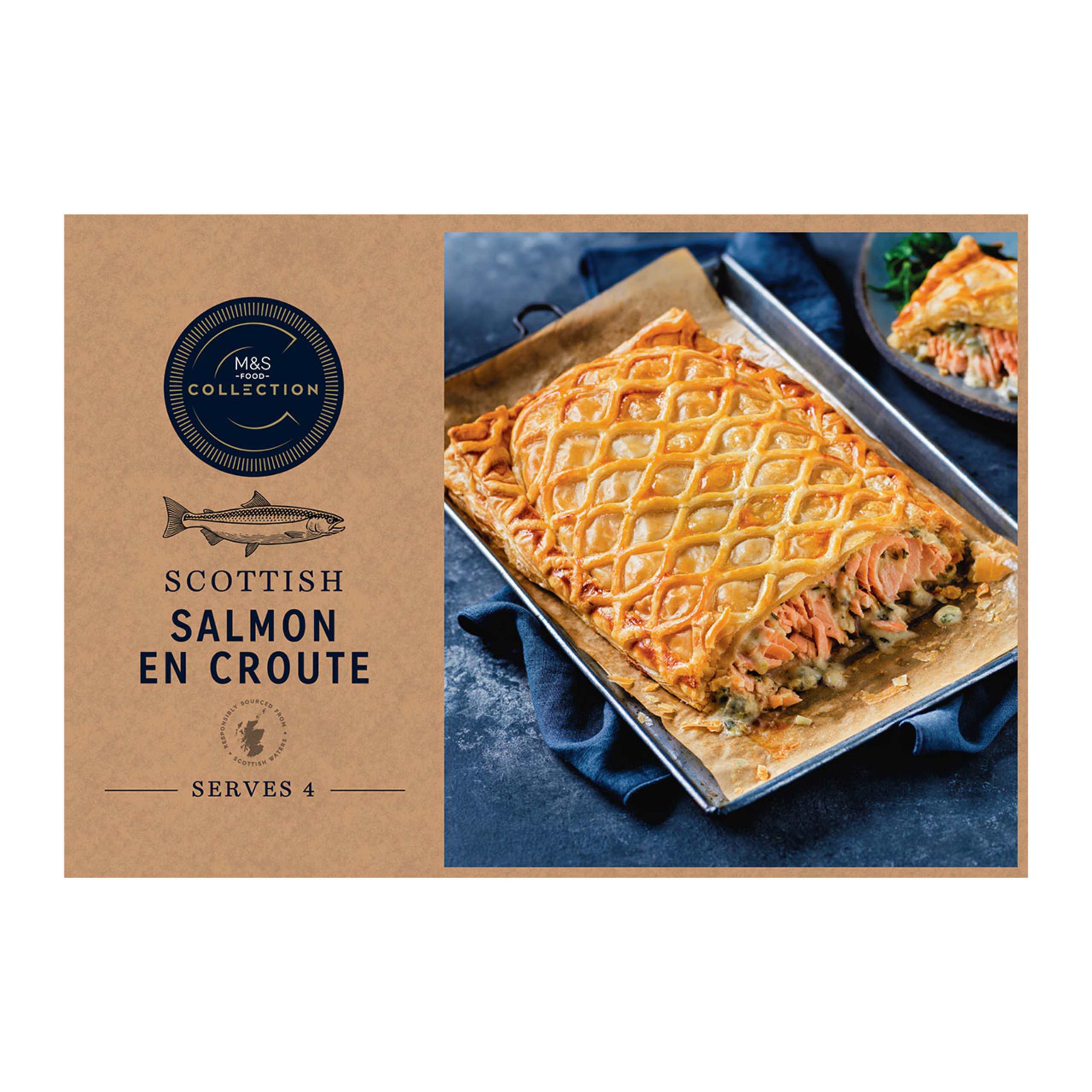 Our indulgent Collection Scottish Salmon En Croute combines Scottish salmon with a layer of smoked haddock and a creamy leek and cheese sauce, encased in crisp all butter pastry. This flaky and succulent salmon is responsibly sourced from crystal-clear waters surrounding Scotland’s west and northern coasts.