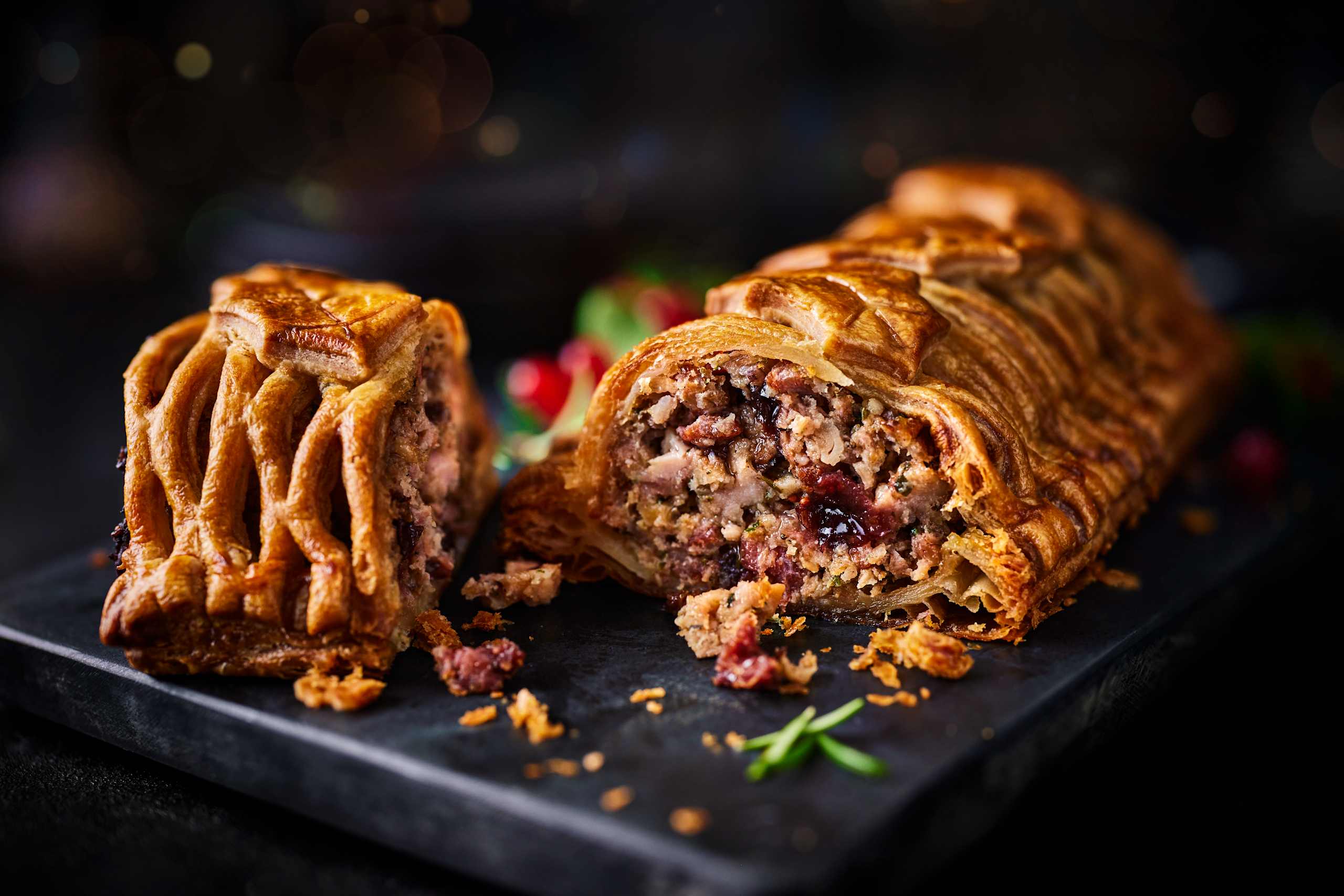 An extra-special Christmas is effortless with our Collection Turkey, Stuffing and Cranberry Yuletide Log. We've chosen truly timeless festive flavours, pairing succulent British turkey with cranberries and a fragrant sage, onion and smoked bacon sausagemeat stuffing. It's all wrapped in a hand-crafted all-butter puff pastry, and finished with a shortcrust pastry holly sprig.