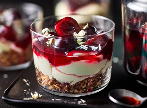 For dessert, cereals bring crunch and indulgence, like in our Sour Cherry Cheesecake, where our Collection Macadamia and Sour Cherry Granola meets silky mascarpone, cream cheese, boozy cherries and white chocolate.