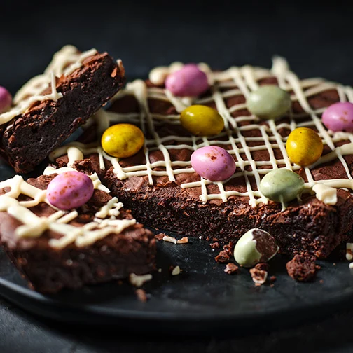 Speckled Egg Brownie Love our Speckled Eggs? You'll soon be able to enjoy them in fudgy, chocolatey brownie form. In store from 20 March, our Speckled Egg Brownie is a rich and gooey milk, dark and white chocolate brownie topped with a white chocolate drizzle and Speckled Eggs. Made in Cheltenham in small batches.