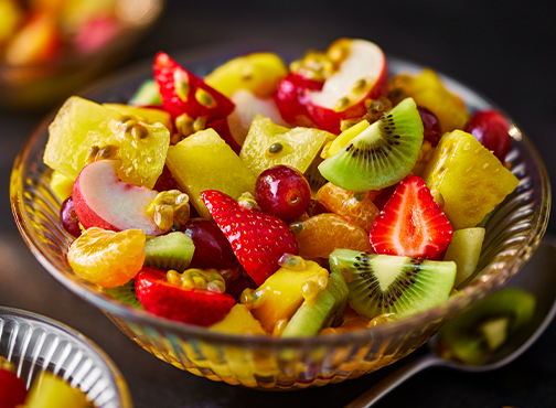 Kiwi contains on average 92mg of vitamin C per 100g, along with 3g of fibre. Try topping your favourite yogurt with sliced kiwi, dunking sliced pepper into houmous or swapping your biscuit snack for a zesty orange to help boost your vitamin C intake.