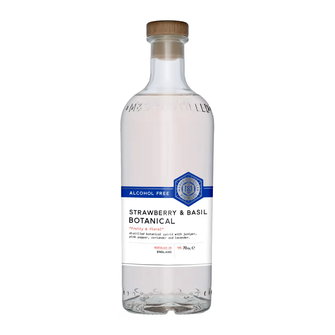 Alcohol Free Strawberry and Basil Botanical – Ripe strawberries and aromatic basil, with hints of juniper, pink pepper, coriander and lavender. Light, refreshing, and full of flavour.