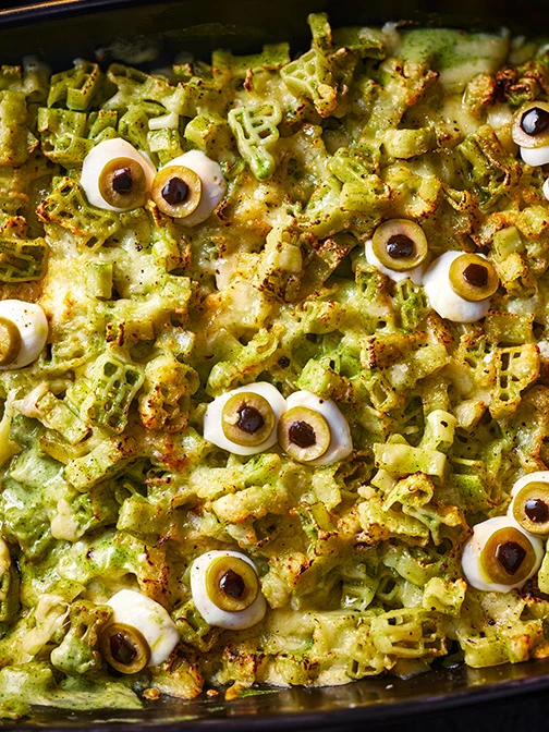 Kick off the big day with our spooktacular breakfast like our boo-nana crumpets, topped with funky faces, or our monster pancakes which use spinach in the batter for a creepy green colour. For lunch, fill up on our monster mac and cheese – make eerie eyeballs with mozzarella balls and black olive slices. Then round off the day with a pizza party, decorating with everything from mozzarella ghosts to olive spiders.