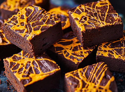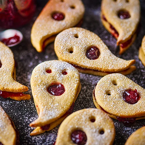 End your evening on a sweet note with a Halloween treat. Bake with the little ones to make these ghost-shaped jam biscuits stuffed with blood-red morello cherry jam for a tangy, fruity flavour. Or use up leftover pumpkin with our fudgy brownies, drizzled with vibrant orange icing.