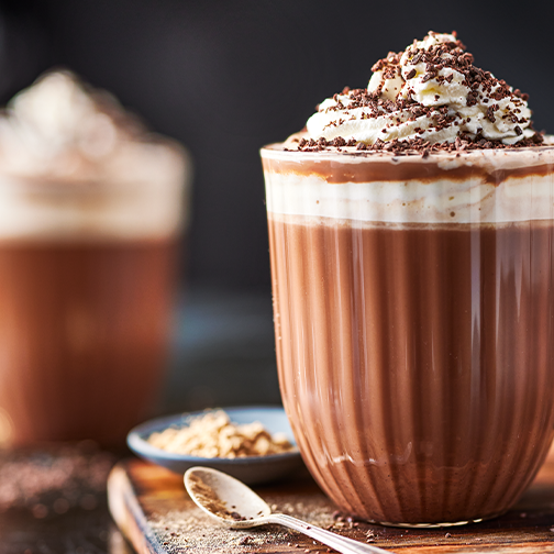 Start with a great-quality hot chocolate. Try our new Collection hot chocolate sachets, in flavours like Belgian Mocha Latte, Salted Caramel or 72% Dark.