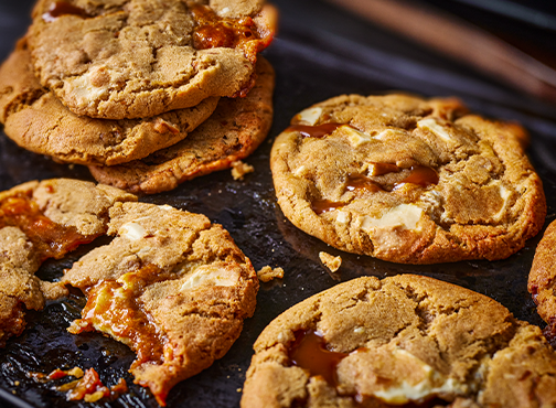 These gooey, white chocolate-studded Marmite caramel cookies, made with our Marmite Caramel Sauce, are completely irresistible.