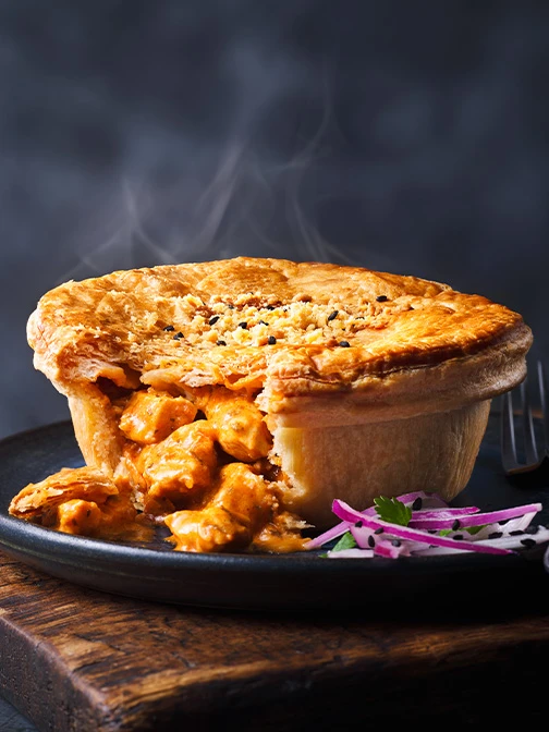 Spinach, onions, feta and herbs baked under a golden, crisp all-butter puff pastry lid.
