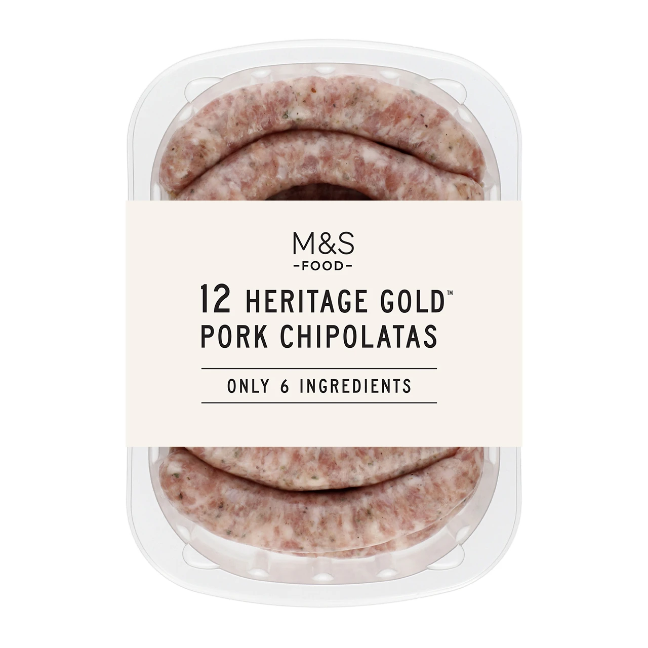 Only 6 Ingredients Pork Chipolatas Tender pork (92%) with the same aromatic seasoning, wrapped in natural lamb casings.