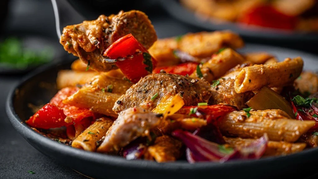Use our pork sausages at home: Slice and fry the sausages until golden, then stir through wholewheat penne with smoky roasted Romano peppers and sweet red onion. Finish with a swirl of creamy mascarpone and hearty cannellini beans for a comforting, flavour-packed pasta that tastes slow-cooked, but is ready in no time.