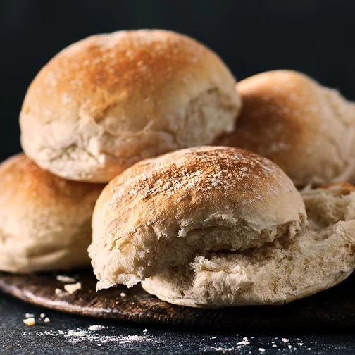 Only 5 Ingredients White Rolls: Perfect for breakfast baps or tasty sandwiches. They're made with Wildfarmed flour that supports regenerative farming.